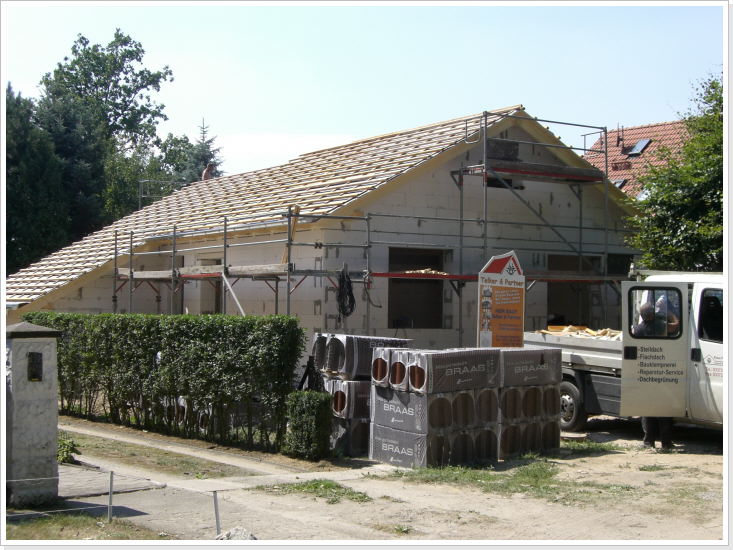 ...und der Dachstuhl ist schon drauf.